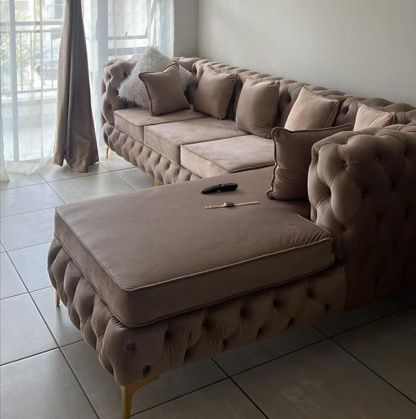 Discover our exclusive L shaped Chesterfield with full button detail. Our couches offers a great opportunity to add a timeless piece of furniture to your home. Handcrafted with the highest quality materials, its luxurious style and comfort will never go out of fashion.